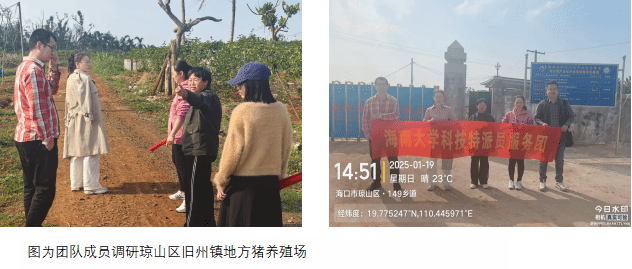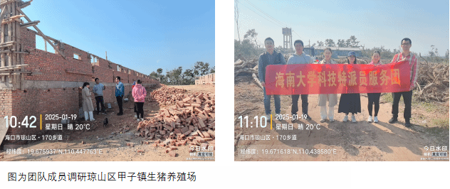 2025年1月19日,hy3380cc海洋之神科技特派员服务团“地方猪应急救灾”项目组成员闻晓波、荀文娟、肖倩、张海文以及海南省地方猪产业技术体系周身娉博士等人,到海口市琼山区甲子镇及旧州镇两家地方猪养殖企业进行调研,对疫病防控、饲料营养及遗传育种等工作开展技术指导。