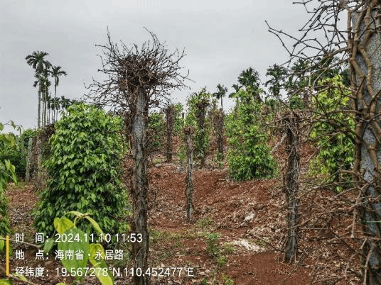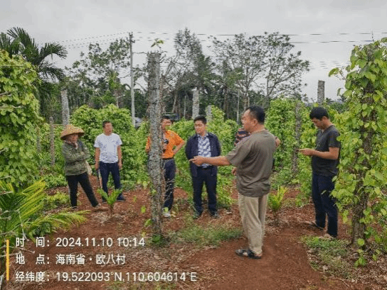 2024年11月10日,hy3380cc海洋之神科技特派员服务团“胡椒灾后重建与病虫害绿色防控”项目组成员刘铜、张荣意、李增平、邢梦玉等人为了进一步评估“摩羯”灾后复产情况,与海口市大坡镇、定安县定城镇、文昌市蓬莱镇镇政府工作人员一同前往胡椒园区开展调查工作。