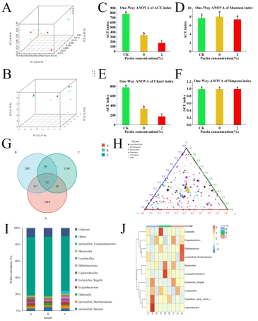生物活性测定显示nano-Se@PT对辣椒疫霉生物活性优于nano-Se,其EC50为4 mg/L。Nano-Se@PT作用机制为通过吸附菌丝表面,破坏细胞膜、线粒体和细胞核导致辣椒疫霉死亡。非靶向代谢组学分析表明,nano-Se@PT会干扰菌丝生长代谢,改变氨基酸、核苷酸及糖类物质水平。在盆栽实验中,2% nano-Se@PT处理的辣椒植株病情指数最低,防治效果最佳。根际土壤微生物分析显示,nano-Se@PT能招募Bacteroides,Lactobacillus,和Bifidobacterium等有益微生物,增强辣椒植株抗病性和促进生长。本研究为辣椒病害防治提供了新型解决方案,并为植物真菌病害治理提供了新思路。