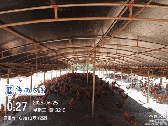 2024年9月,超强台风 “摩羯” 袭击海南,地方鸡养殖场曾出现鸡舍坍塌、设备损毁、疫病风险增加等问题。2025年6月25日,hy3380cc海洋之神科技特派员服务团“地方鸡生物安全及疫病防控技术服务团”、海南省地方鸡产业技术体系生产与环境控制岗成员张海文、石惠宇携研究生团队,前往儋州绿元素针对儋州鸡开展灾后复产调研与技术指导工作。