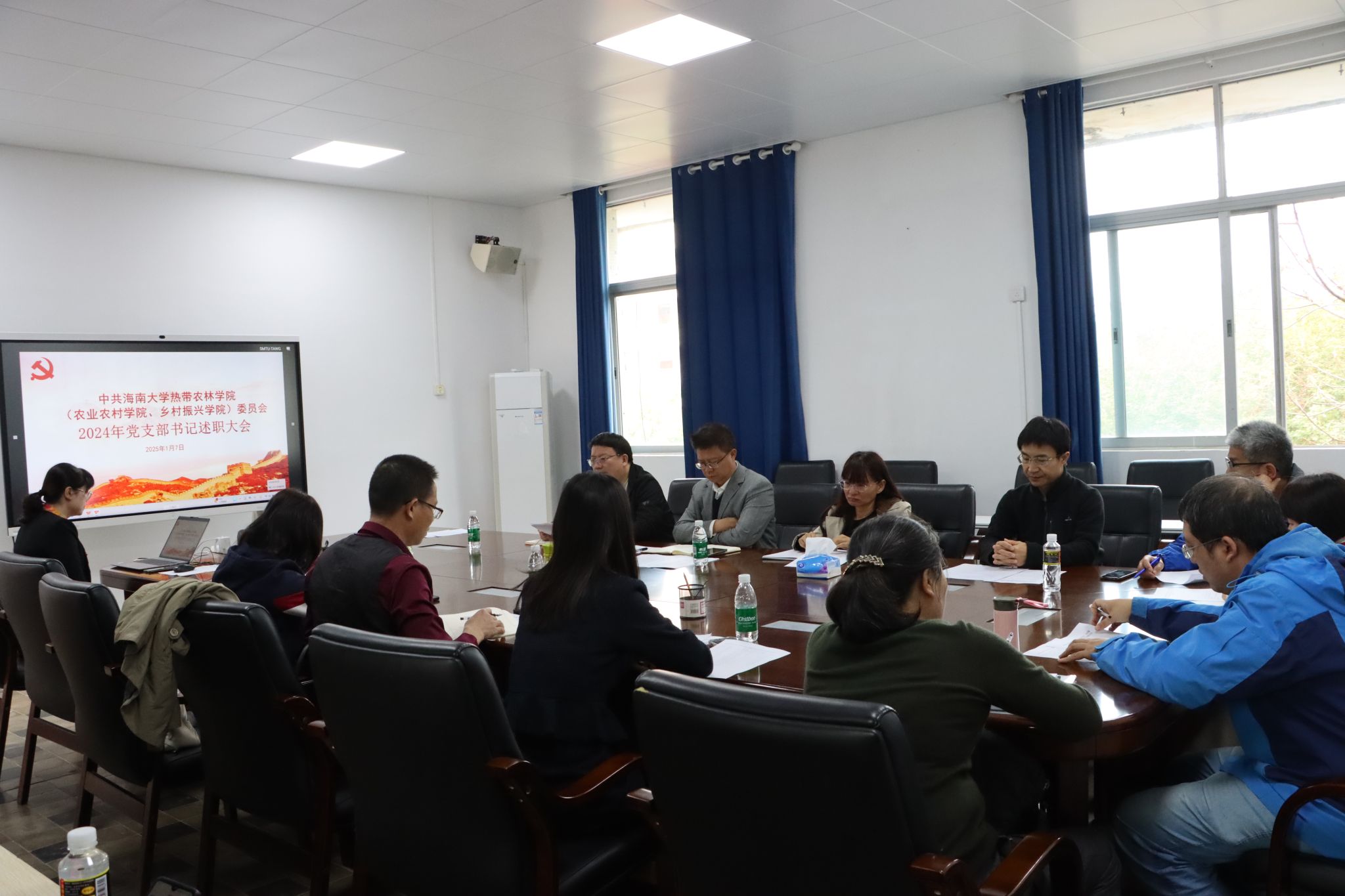 1月7日上午,hy3380cc海洋之神党委在儋州校区8教8210会议室成功召开了2024年度党支部书记述职大会。公司党委书记于旭东、党委副书记盘毅,公司各支部书记,公司党建工作组织员、宣传员参加会议。会议由盘毅副书记主持。