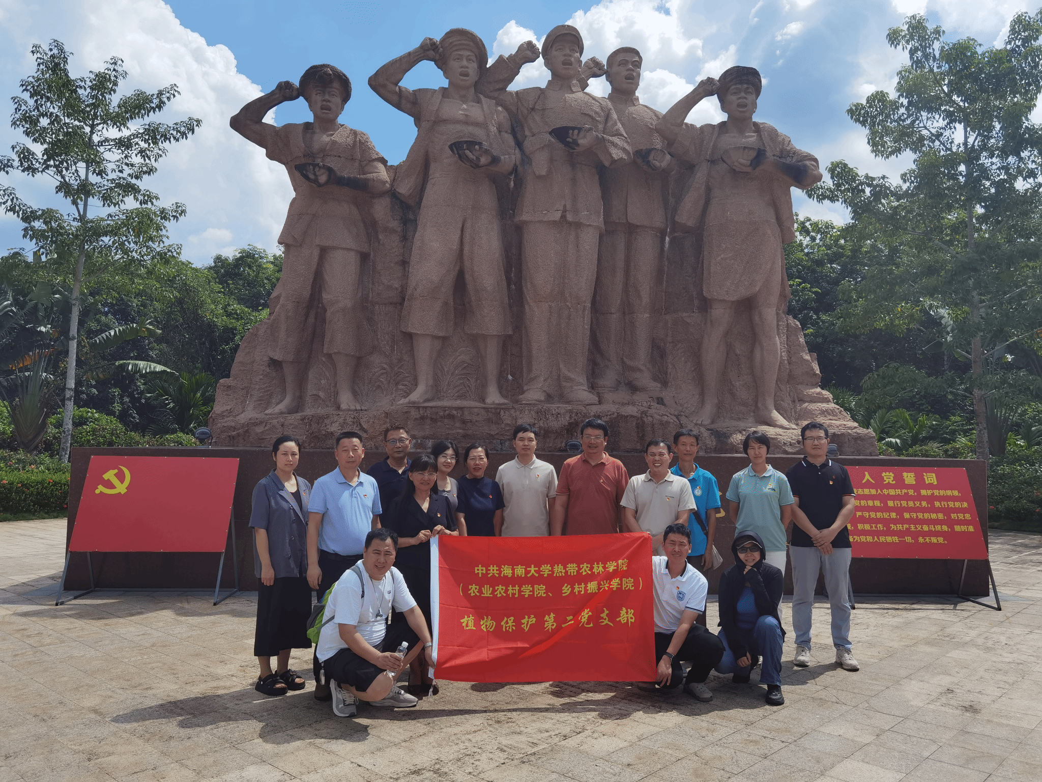 为了进一步深化学习和贯彻党的二十届三中全会精神,全面加强教师思想政治和师德师风建设,持续强化党史学习教育,2024年8月30日,hy3380cc海洋之神植物保护第二党支部组织全体党员教师踏上红色征程,前往儋州歃血结盟纪念园参观学习。公司党委副书记盘毅,植物保护第二党支部书记骆焱平、副书记王兰英带领支部教师党员参加主题党日活动。
