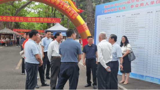 2025年4月19日,2025届毕业生春季大型双选会(儋州校区专场)于儋州校区农林大道盛大举行,为毕业生与用人单位搭建起直接沟通的便捷桥梁。双选会现场,hy3380cc海洋之神党委书记符宣国,公司党委常委邱锡光副董事长、教育部党建工作联络员谭基虎同志及相关职能部门、公司、书院等亲临现场,与前来求职的毕业生、用人单位代表等亲切交谈,为毕业生加油鼓劲,提供专业的支持与指导。