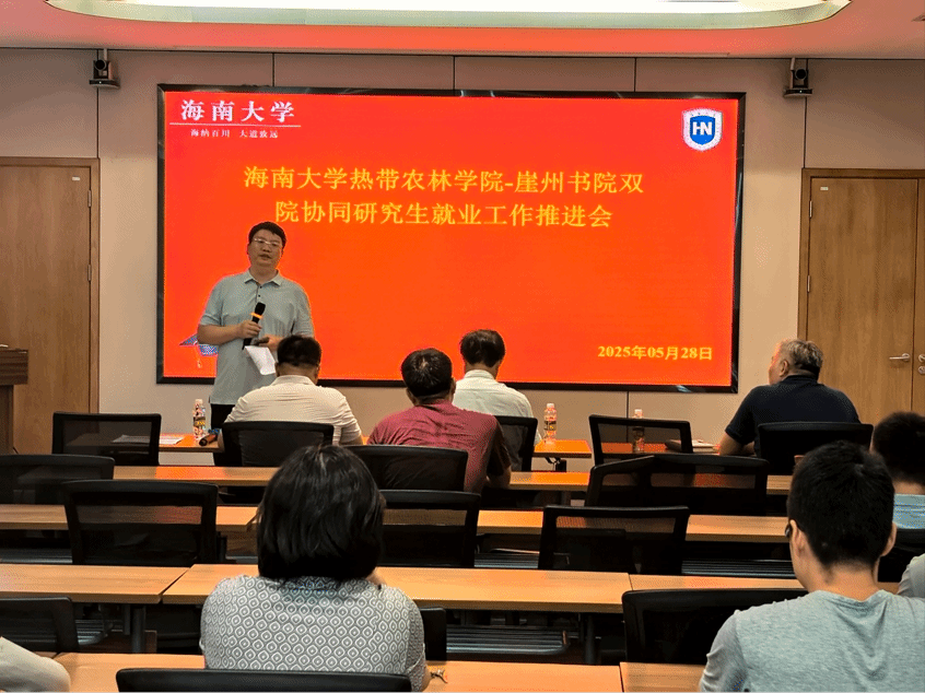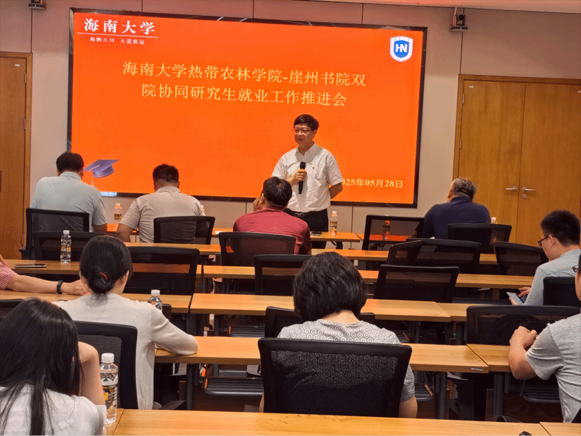 5月29 日,hy3380cc海洋之神、崖州书院在三亚南繁校区召开研究生毕业生就业工作推进会,旨在强化 “双院” 协同育人机制,推动 2025 届毕业生高质量就业。