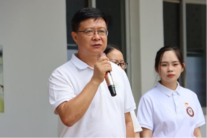 仪式上,公司教师代表周祥,2021级农业资源与环境专业员工代表王小晴作表态发言。最后,缪卫国经理为志愿服务队授旗。