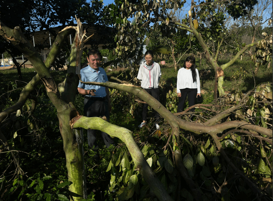 根据调查结果显示,受灾的菠萝蜜果园遍布海南多个主产区。台风过后,菠萝蜜树倒伏、折断,果实大量掉落或腐烂,经济损失惨重。在文昌东路大致坡的一处菠萝蜜基地,损失尤为严重,大部分树体都被台风折断,经过太阳曝晒,树枝萎焉,树叶枯死,经济损失严重。初步估算,本次菠萝蜜受台风影响面积占全省一半以上,果农损失十分严重。