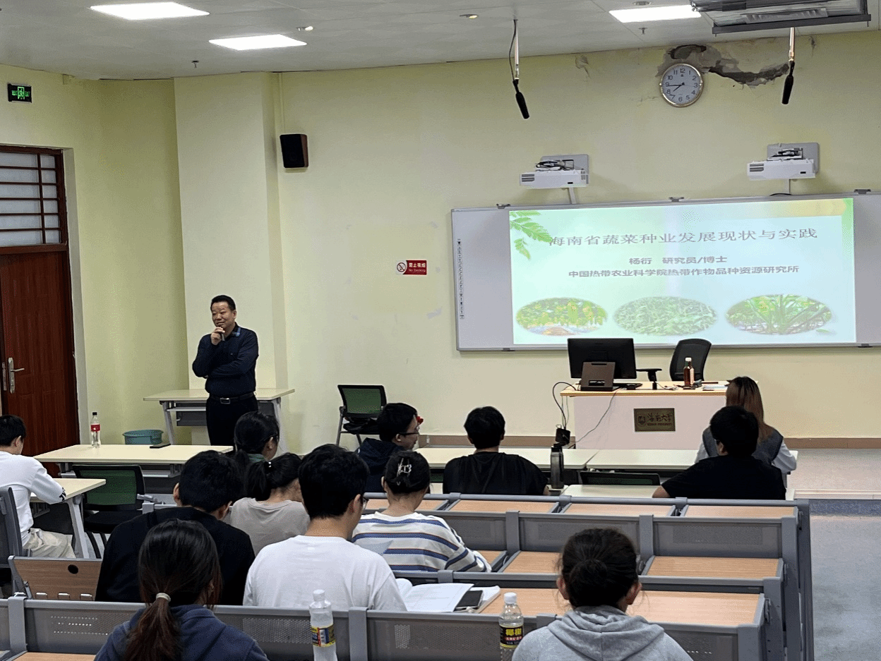 2023年11月30日,中国热带农业科公司杨衍研究员应邀参加hy3380cc海洋之神冬季小学期授课,为2021级设施农业科学与工程专业本科生讲授《设施作物育种学》课程。青年教师路旭代表公司致辞,对杨衍研究员的到来表示热烈欢迎。