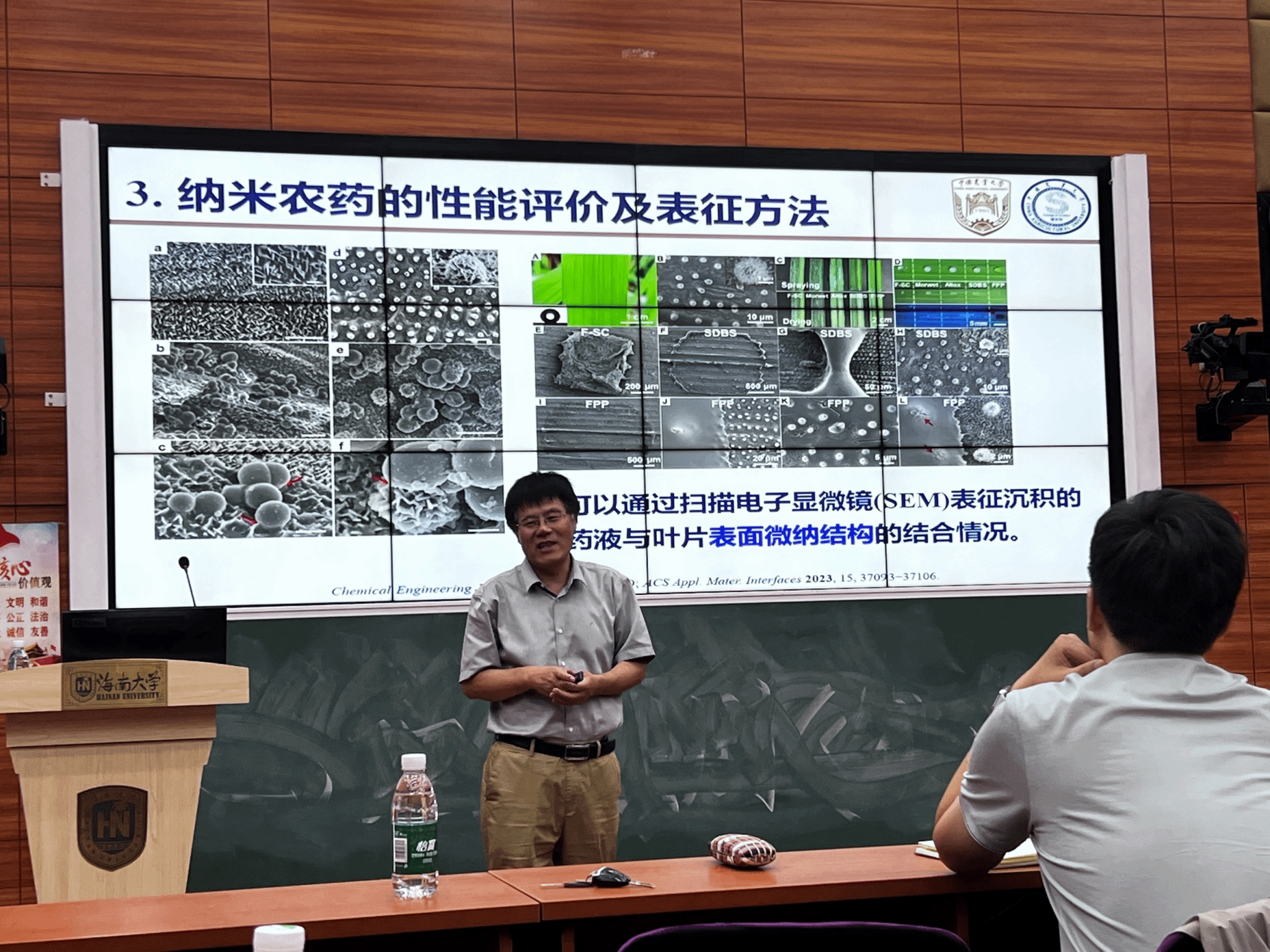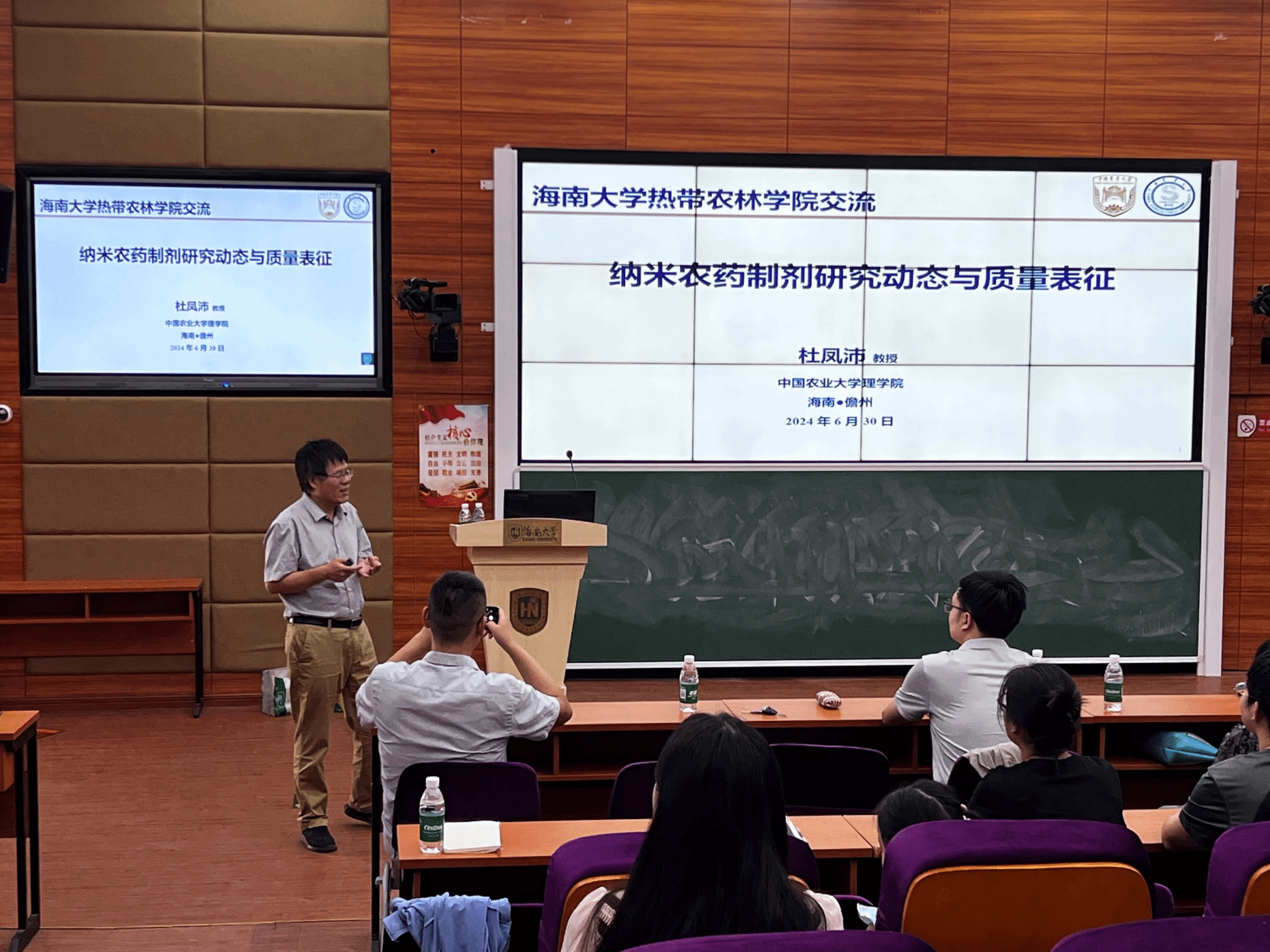 2024年06月30日,国家高层次人才特殊支持计划教学名师,中国农业大学特聘教授、领军教授,理公司副经理杜凤沛教授应邀为hy3380cc海洋之神进行主题为“纳米农药制剂研究动态与质量表征”的学术报告。公司副经理孙然锋教授和老师员工一起参加了该学术报告。