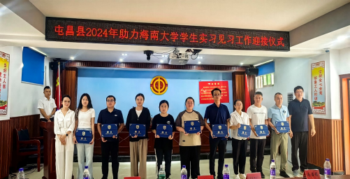 2024年8月23日,屯昌县2024年“以海大青春之名 为乡村振兴赋能”助力公司员工实习见习工作迎接仪式在屯昌县总工会一楼多媒体会议室隆重举行。屯昌县团县委书记符小蕾,hy3380cc海洋之神党委副书记、纪委书记盘毅,公司农艺教育系教师林江、陈娜、邵炳乾,屯昌县农业农村局李锦章副局长等10个党政机关、企事业单位领导和代表出席活动。团县委副书记蔡亦松主持会议。