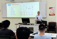 王洪斌教授向员工们介绍微创外科的发展