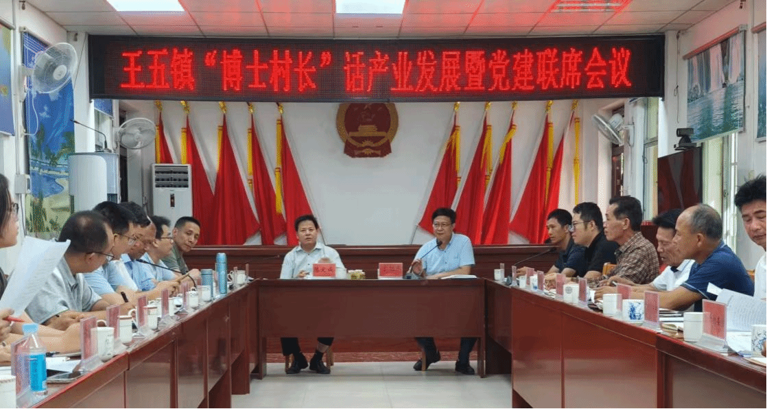 在联席会议上,王五镇党委书记陈文成对博士团的到来表示热烈欢迎,组织委员符博丞汇报了2023年王五镇博士村长工作情况;成立了王五镇“博士村长”临时党支部;集中学习了《中国共产党纪律处分条例》第九章对违反群众纪律行为的处分条款;听取了镇党委副书记、乡镇村振兴工作队长钟庆光宣读的《王五镇“博士村长”联农带农结对方案》。